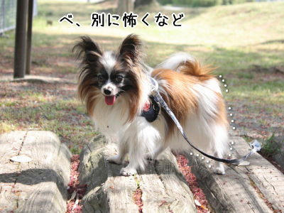 (゚m゚*)プッ 丸太橋の隙間(溝)が怖いそうです。