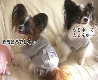 お散歩行ってトレーナーも作ってもらって(これはあまり喜んでないかも)ご褒美もらって七草まで!至れり尽くせりですよねっ!(*^m^*) な~んて、飼い主の自己満足ですけどね(*´ェ`*)ゞ あらし、実はすんごくわかりやすい子なんですよね~~!風吹に遠慮してるけど、風吹が控えめな時なんかは、風吹を押しのけてでも欲しがります!トレーナーかわいいですか~♪ありがとうございます!一応お外にも着て出れるように意識はしたんですよ(ノ∀`*)