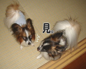 風吹も最初は負けずにガウガウしてたんですけどね~コハクが全く懲りないもので、そのしつこさにタジタジって感じでした(* ̄m ̄) 風吹あらしも相当しつこい方ですが、コハクには完全に負けてます!