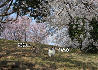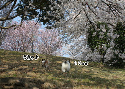 桜の下でお散歩って気持ちいいですよ~♪おヨダショットはたまたま撮れたんです~~~貴重な親子ドームですよ~( ̄m ̄〃)ぷぷっ