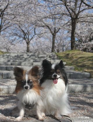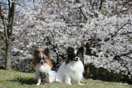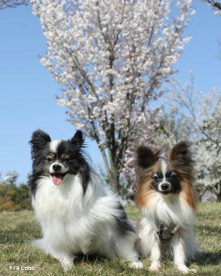 チワワン軍団と一緒にお花見に来ていたようです('-'*)