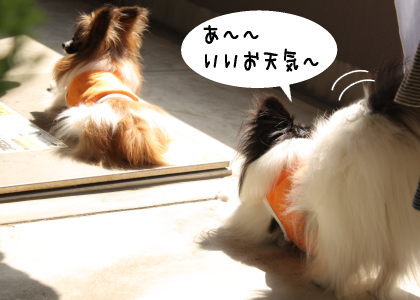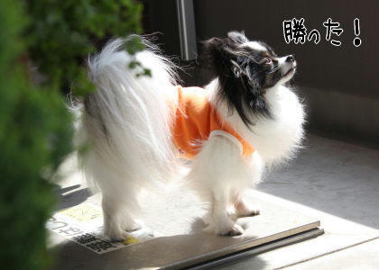 あらしにとったら勝利のポーズ的なものでしょうか(*^m^*) しばらくこの状態で空を見上げ余韻にひたっているかのようでした(笑)パピヨンのシルエット、私も好きです~♪尻毛、ちょっと風になびいちゃってますけどね(^w^) かっこいいと言って下さってありがとうございます(o^-^o)