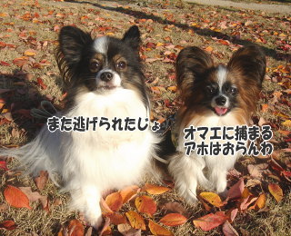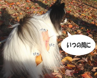 もう~公園に来ると表情が変わりますよね(´∀`*) 楽しくって仕方ない!って感じです。落ち葉、クンクンするのが多い風吹は耳毛にくっつくし、あらしはシッポにいっぱいくっつけてました~~。付いた時につぐ取らないと、なぜか絡まって後が大変なんですよね~。迷子札は我ながら良く見つけたと思います~~(;゜▽゜A