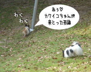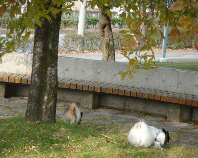 昨日は2匹の完全休養日にしたので、今日は近くの公園でお散歩。