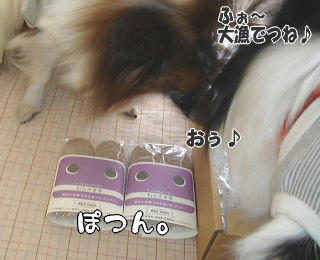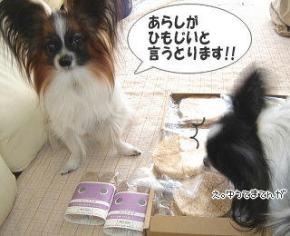 シエルくんも箱に乗りますか!(* ̄m ̄) ププッ ドットわんクッキーは、今回初めて購入してみました。いつもおじやを買う時にサンプルが入っているのですが、どのお味もうちの2匹は大好きみたいです。むらさき芋は肝臓に良いとのことで、今回はむらさき芋クッキーにしてみました♪ドッグおじや、はじめはお友達に分けていただいたのがきっかけだったのですが、風吹の肝臓の数値が良好になったのは、これを食べ始めてからだったんですよね・・。風吹の体質には合っているのかもしれません(^-^) お味も香ばしくておやつ代わりにも良いですよ~(ただし少々お高めです)
