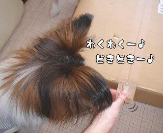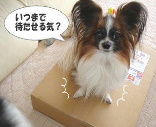 中身が気になって仕方がない風ちゃん。箱の上でお待ちかねです!