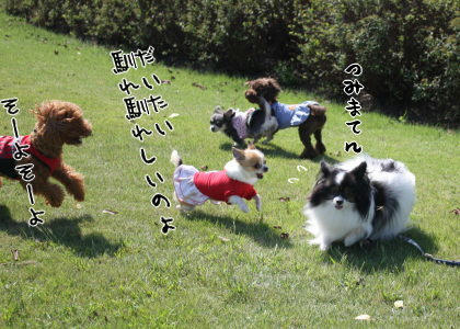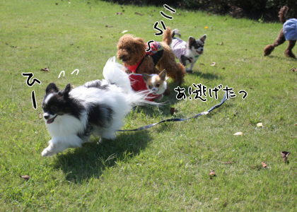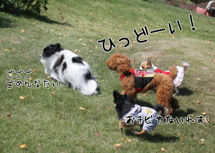 小型犬の団体さんがたむろ楽しげに走り回っていました。