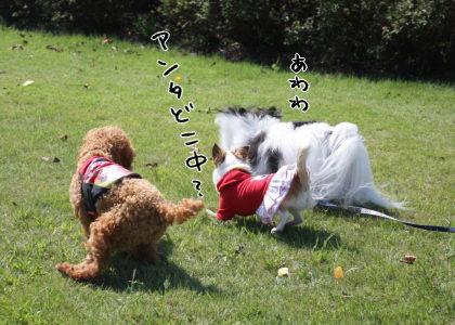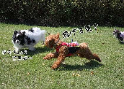 あちらのお友達もコチラを意識していたようで、1匹のちわわんが