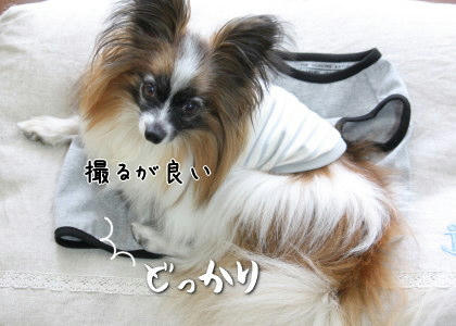 まぁ♪お洋服をお褒めいただいてありがとうございます♪なんか毎度シンプルなんですけどね…自分の好みで作っているので、お褒めいただけると素直に嬉しいです(*´ェ`*)ゞ 風吹でしょう~着るのは好きなので自分から頭入れて来るし、袖から上手に手も出すんです(動画ではちょっと突っかかってますけど…)ぴろみんさんちのパピズもお洋服着るんですね!着てるとこ…見たことありましたっけ?(゜ω゜) お洋服にあんまり慣れてないのかな~(^・^;)