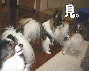 みんなおやつに注目してるのに、コハクだけは風吹に注目。