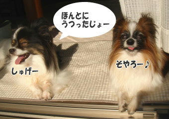 日向でまったりする時は、優しい父ちゃんに大変身です!ガッツポーズ、ムリヤリこじつけましたが・・・見えなくもないでしょ?(。・m・)クス