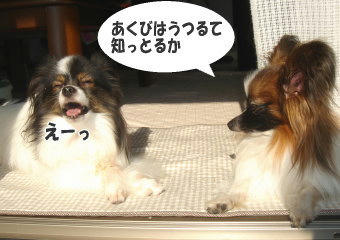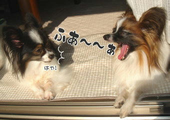 はい~(o^-^o) 縁側茶のみ劇場開幕ですよーー♪お待たせしました!(待ってない?)あくびはコレ、ほんとに連続して出たものなんですよ!うつるんですよ、わんこも。たぶん(笑) あらしは黙ってイタズラさせてくれますね~~あとでしっかりご褒美(謝礼?)あげてます!新種、私もお気に入りなんですよ・:*ゞ(∇≦* )
