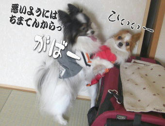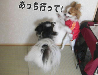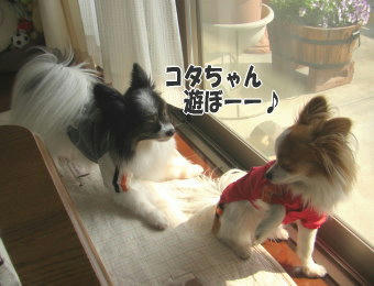 風吹が吠えればコタちゃんも吠え、コタちゃんが吠えれば風吹も