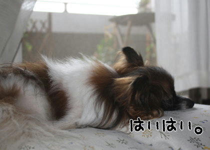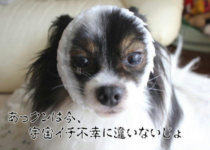 洗顔前のロン毛の兄ちゃんだ!(≧3≦) =3 怒った顔は、実際は緊張して硬直してる顔なんですけどね(゜m゜*)ぷっ ぱぴーくんはうまいこと逃げちゃうんですね・・・あらしは逃げたら怖いと知っているので(笑)ガマンしてくれますよ(^w^) ぱぴーくんの被ってる顔も見てみたいですね~~♪