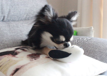 お芋はもうあげられないのでおもちゃを投入!