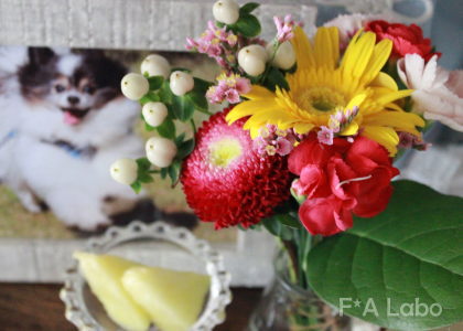 今日は、いつものお花屋さんのミニブーケにしました。