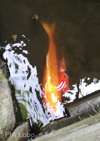 地蔵様の背後から近付いて来る鯉コンビ(笑)