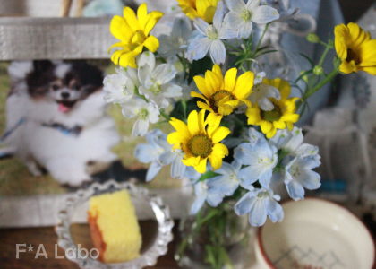 お花は今回、マリンブルーとヒメヒマワリ。
