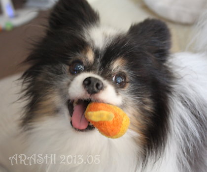 このころのあらしはおもちゃを咥えたままベロンチョ出して笑うと言う器用なこと普通にやってたんですねぇ(笑)