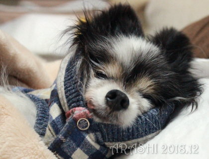 手作り洋服に身を包み、エスキモー風のあっクン♪