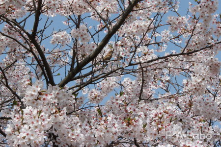 ちょうど満開!ばっちり見頃!枝にスズメの姿も…♪