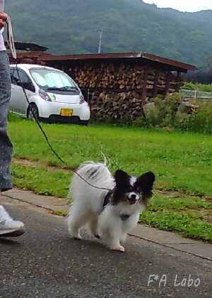 施術が終わって…小雨の中 笑顔でお散歩♪