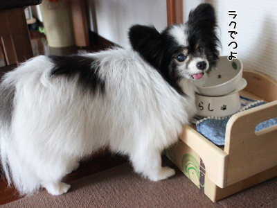 良さげな高さの食器の上に普段使いの器を斜めに…。