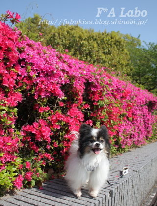 良いお天気に楽しい公園お散歩♪わんこさんに吠え吠えしても、今回はバッチリ(^-^)vツツジの前で可愛~く*モデルさんのリベンジ果たしましたね!