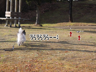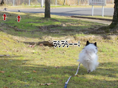 貸切の公園で小鳥さんを蹴散らしご満悦♪