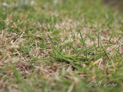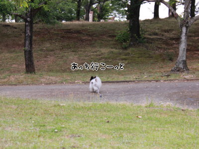 痛い芝生がお気に召さないとみえて広場から離れてく。