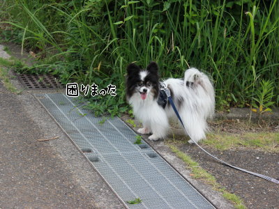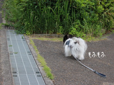 すぐに捕獲され、改めて芝生を避けてお散歩。