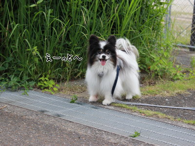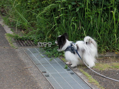 ちゃまもグレーチングをビョーンと飛びますよ、散歩の行きしは…。