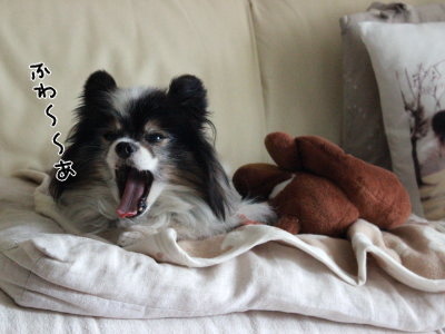 逆さ本官さんを枕にお昼寝態勢のあっクンですが…