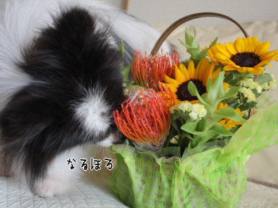お花の隙間にお鼻突っ込んではクンクンふがふが。
