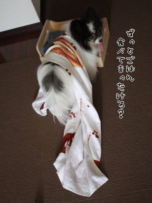 ずっとごはん食べてた人の背中に勝手にバスタオルが乗る