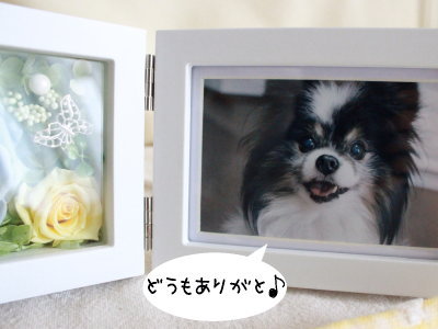 プリザーブドフラワーのフォトスタンドとハンカチタオル♪
