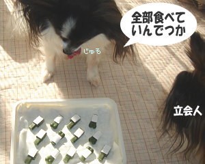 今回は2匹の大好きなグリニーズを使って抽選してもらうことに…。
