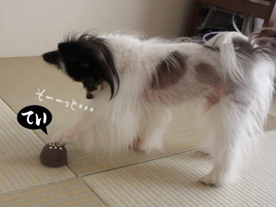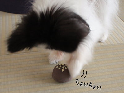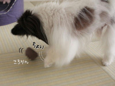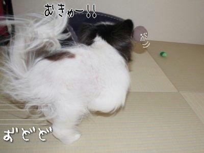 おもちゃが転がるとあっクンも転がるように追いかける♪
