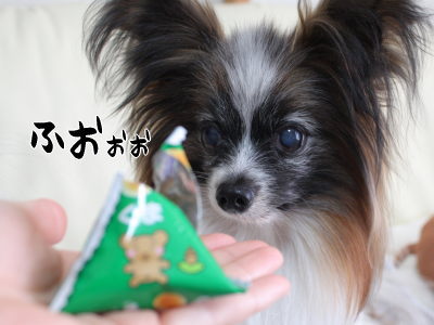 クリスマスだし、さっそく開けてあげようね♪緑のね。(中身はボーロです)