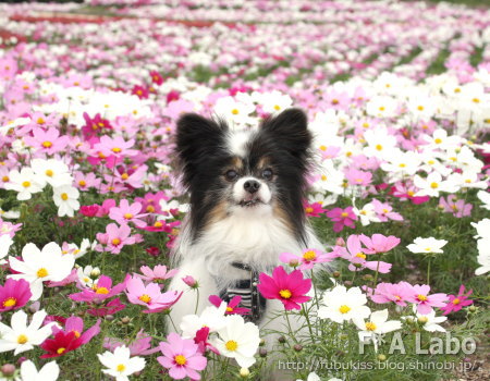 こちらのコスモスも小さくてわんこの撮影にはピッタリ♪