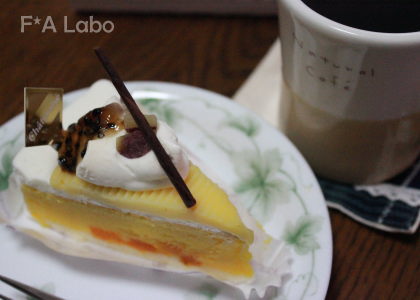 お芋のケーキに、ハロウィンらしくかぼちゃ入り。