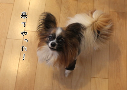 とっても楽しいひと時でした~!ウォルフィくん、テーブルの脚に激突