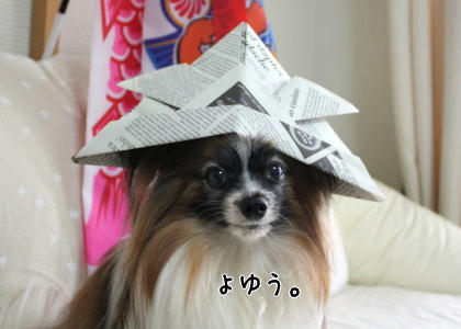 去年だったか、かぶとを作って隼くんに被せてなかったでしたっけ~?
