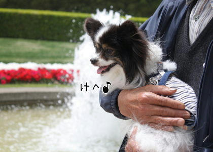 じぃじに抱っこされてるせいか噴水も平気なあっクンです。