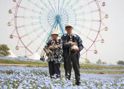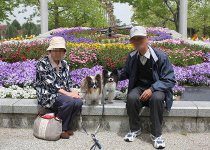 この日のベストショット!じぃじばぁばと風あら(花時計にて)