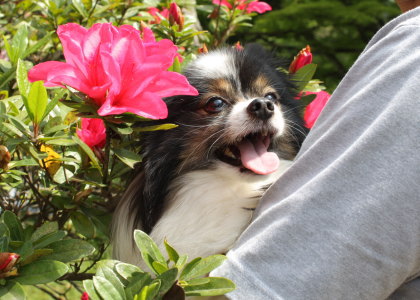 あは、パパさんに抱えられているあっクンの写真、ツツジよね~