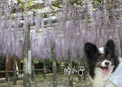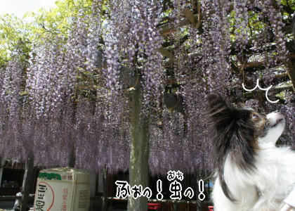 藤の花に寄って来るハチにおののくあっクン( ̄ω ̄)