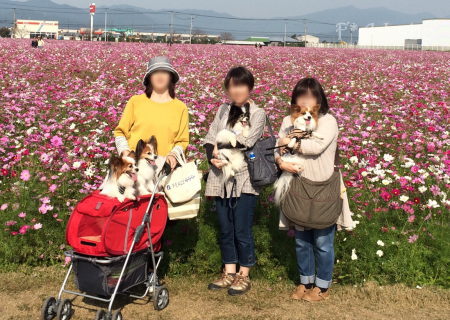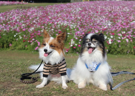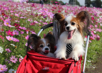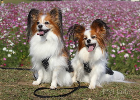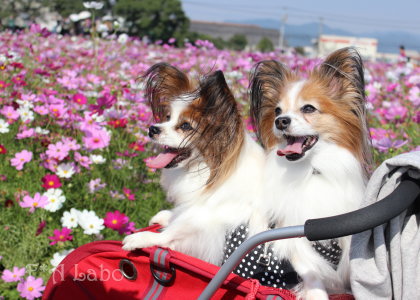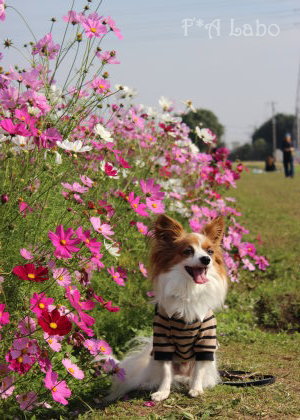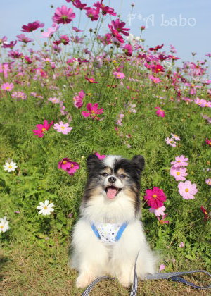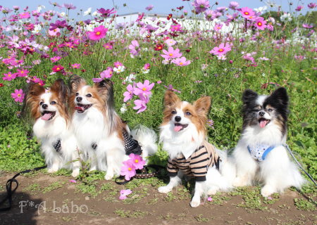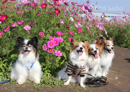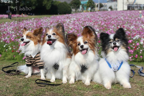 男子チームの凛々しさと女子チームの可憐さ、コスモスを背景に パピヨンの魅力と可愛さを引き出した素敵なお写真ばかりで♪