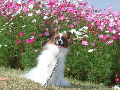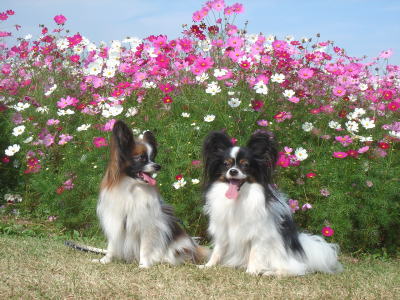 ここのコスモスは有名!今回で3年連続行ってるけど、今年が一番いいタイミングで見れたみたい♪花が若くてすごく綺麗だったよ(o^-^o) 一千万本だって!駐車場に入る前、車の中から見て感動したもん!ホントに見応えあるよ~~(´∇`) ミッキーくんとの3ショットは残念(* ̄m ̄) 人もわんこも多くて落ち着けなかったんだよきっと。公園に移動してからは、3パピともはしゃぎ疲れてずいぶん落ち着いてたけど、やっぱりお散歩は嬉しいみたいでいい顔いっぱい見れたよ♪あらし、親バカだけど可愛いよね~(〃▽〃) アレね、葉っぱが落ちる寸前のショットなの!(あらしがイヤがってね)修行は失敗に終わったのでした~(爆)