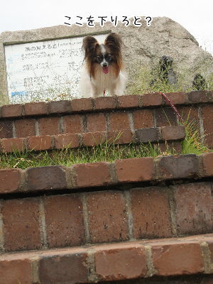 ( ̄▽ ̄;)…すでに疲労困憊の風ちゃんにはこの段差も断崖絶壁らしい。